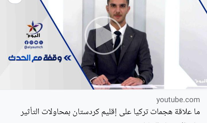 عقب الهجمات التركية على إقليم كردستان للتأثير على الإحصاء السكاني د/ مصطفى عماره الكاتب الصحفي والمحلل السياسي لقناة اليوم السورية : تركيا تحاول إحداث فتنة بين مكونات الشعب العراقي من خلال هجماتها وتحقيق أجندتها الخاصة باستمرار احتلالها لأراضي في كردستان