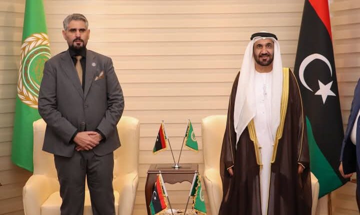 مثمنًا دعم ليبيا الدائم لقضايا الأمة العربية على كافة المستويات:* *رئيس البرلمان العربي يلتقي مندوب ليبيا الدائم لدى جامعة الدول العربية