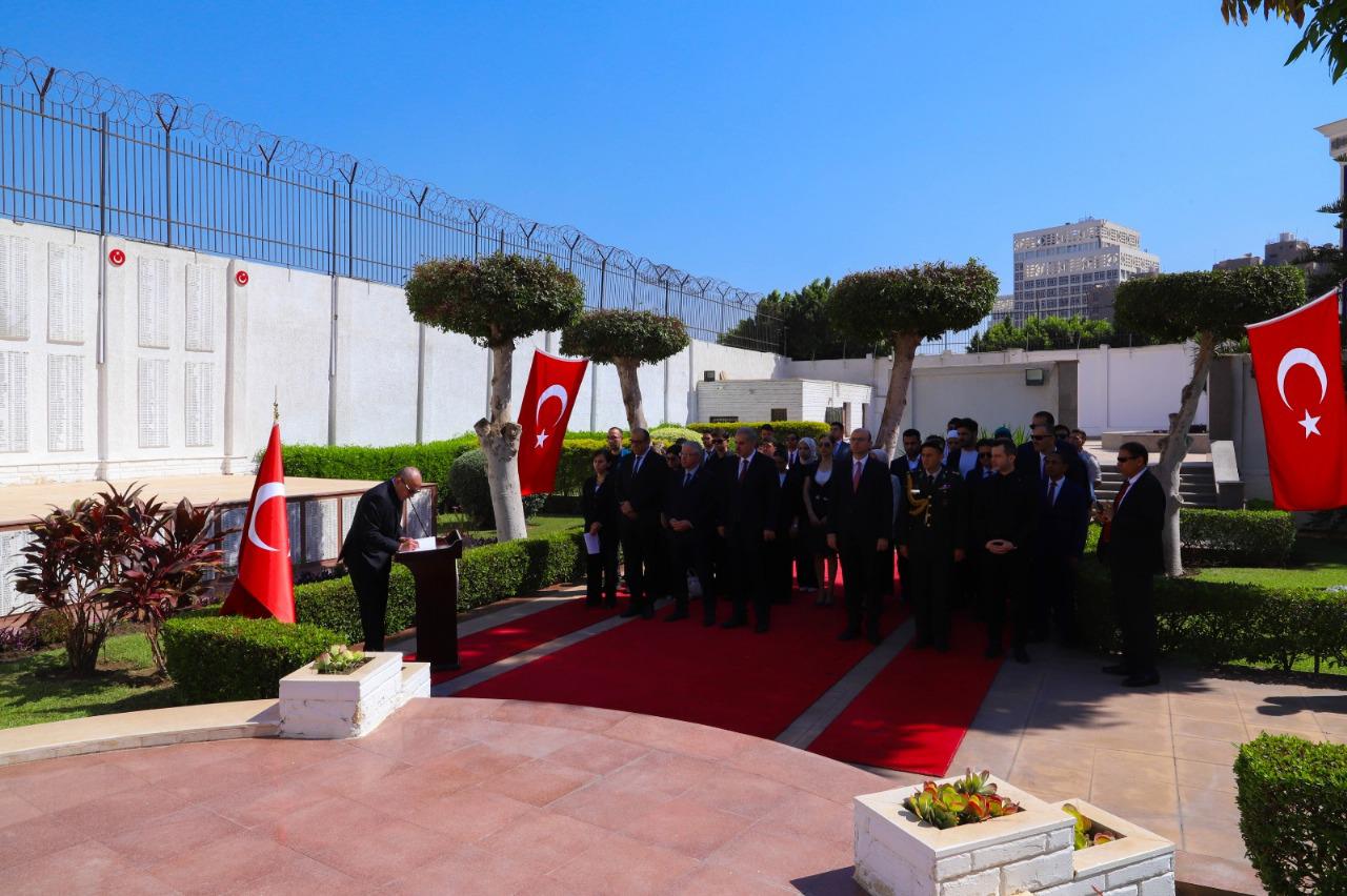 قام أعضاء السفارة التركية في القاهرة بزيارة مقبرة الشهداء الأتراك في القاهرة أولاً ووقفوا دقيقة صمت حداداً على أرواح 4500 مواطن تركي استشهدوا على جبهة فلسطين خلال الحرب العالمية الأولى، بالإضافة إلى أولئك الذين استشهدوا في 15 يوليو. وبعد تلاوة القرآن الكريم الصلاة على أرواح الشهداء، وقع صالح موطلو شن، سفير تركيا في القاهرة، على كتاب الشهداء التذكاري.