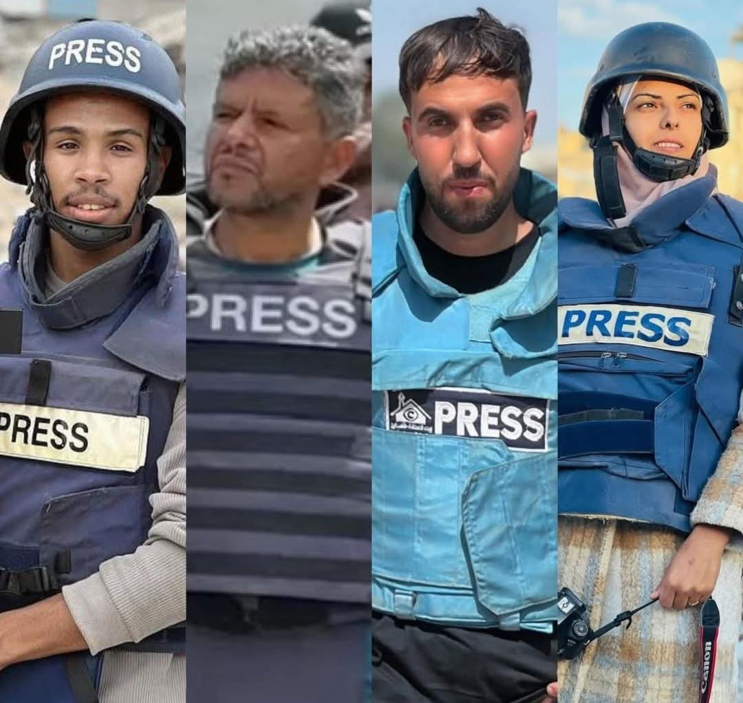 نقابة الصحفيين الفلسطينيين تدين المجزرة البشعة التي ارتكبها الاً.حتلال الإسرائيلي داخل مجمع ناصر الطبي بمدينة خانيونس، والتي استهدفت بشكل مباشر الطواقم الإعلامية والصحفية، وأدت إلى ارتقاء أربعة من زملائنا: