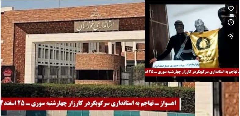 قامت وحدة من وحدات المقاومة التابعة لمنظمة مجاهدي خلق الإيرانية يوم الاثنين 16 مارس بشنّ هجومٍ مسلّح على مبنى محافظة خوزستان في الأهواز جنوب غرب إيران، مردّدةً شعار: «تحية لرجوي، عاش جيش التحرير الوطني الإيراني. »