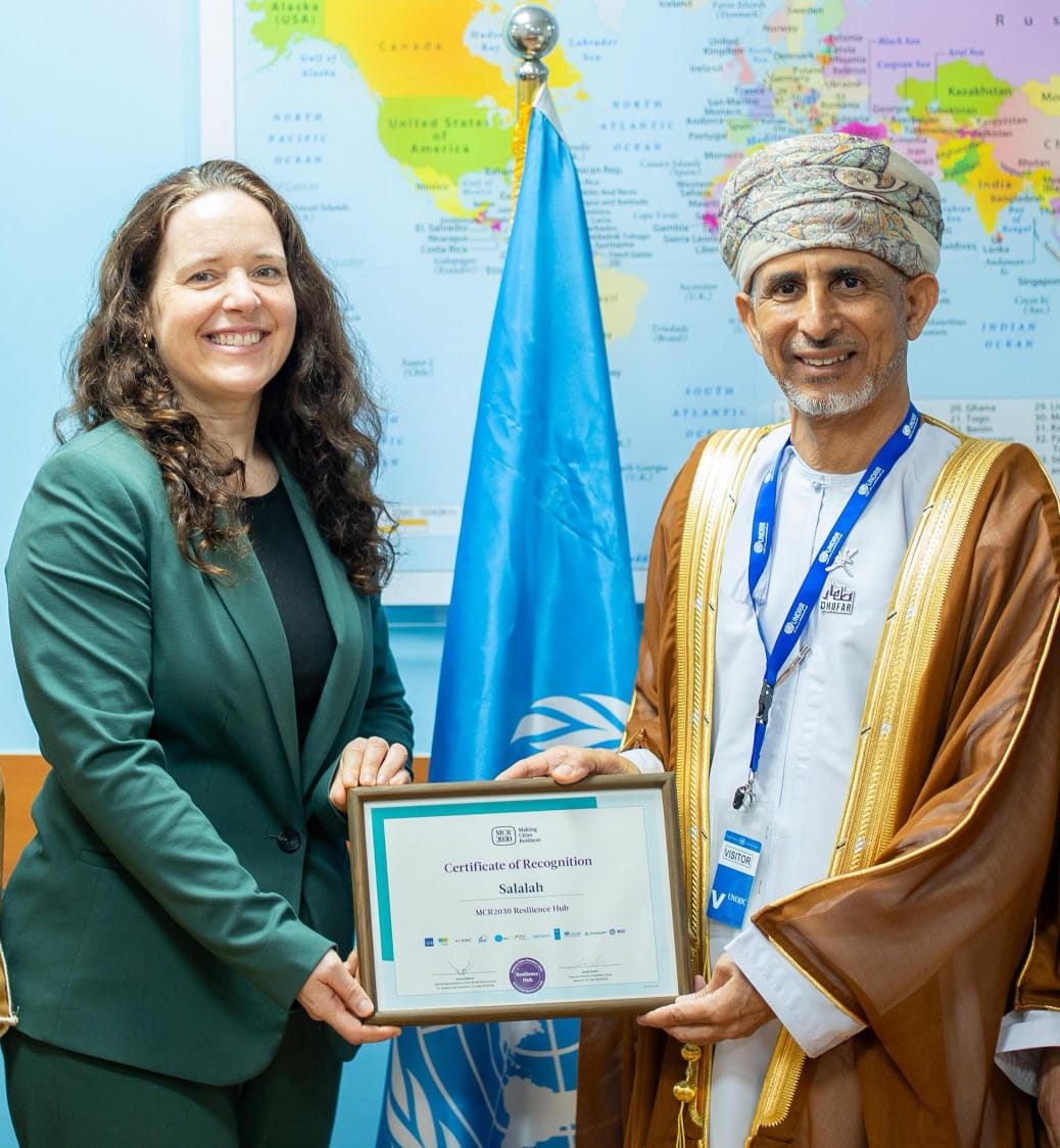 يشار الى ان مدينة صلالة حصلت على الاعتراف الدولي كمركز للمرونة ضمن برنامج “جعل المدن قادرة على الصمود 2030” التابع لمكتب الأمم المتحدة للحد من مخاطر الكوارث، لتصبح أول مدينة في سلطنة عُمان تنال هذا الاعتراف، والثانية على مستوى دول مجلس التعاون الخليجي، والثالثة عربيًا.